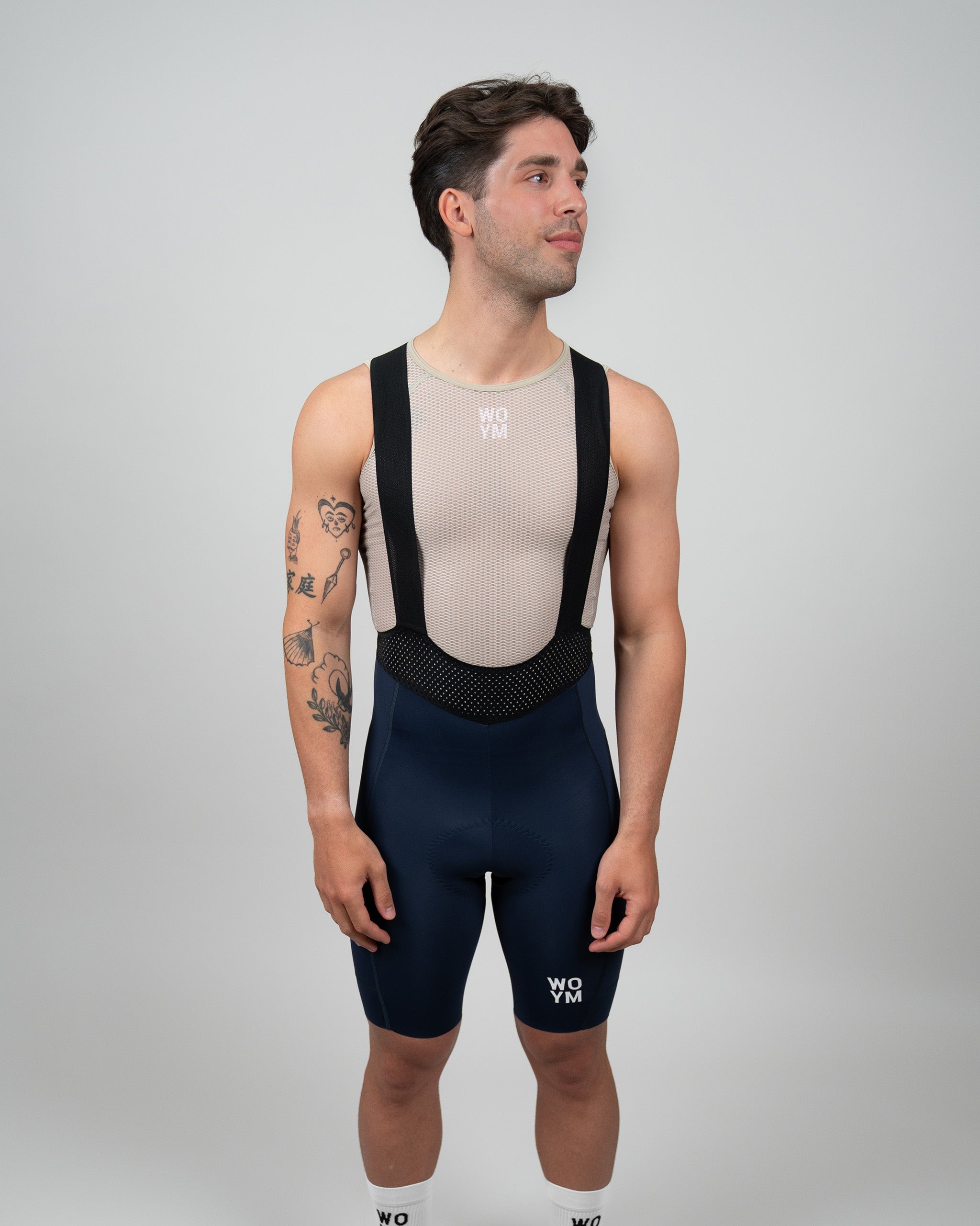 WOYM Cargo Bib Shorts er skabt med fokus på komfort, funktion og æstetik. Små, men definerende, optimeringer i pasformen og et mere minimalistisk udtryk er kombineret med et teknisk tekstil fra italienske Sitip, der rammer den rette balance mellem åndbarhed, kompression og bevægelsesfrihed. De komfortable skulderstropper er konstrueret i let, elastisk mesh, mens lommekant- og øverste kantafslutninger bliver afrundet af en sømløs svejsning – for at minimere syninger og give et rent udtryk. Den laserskårne benafslutning tilfører elegant komfort for den perfekte afslutning.