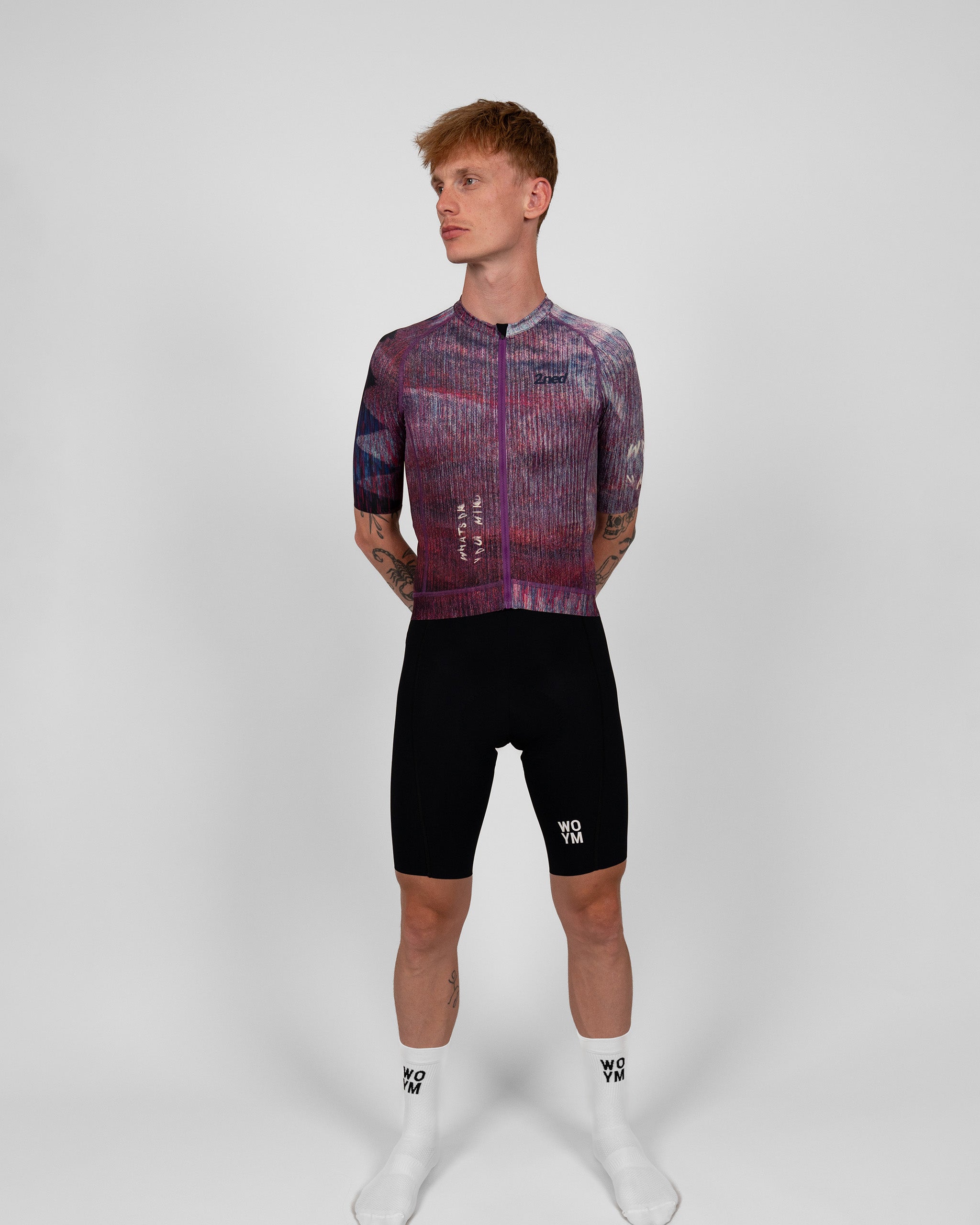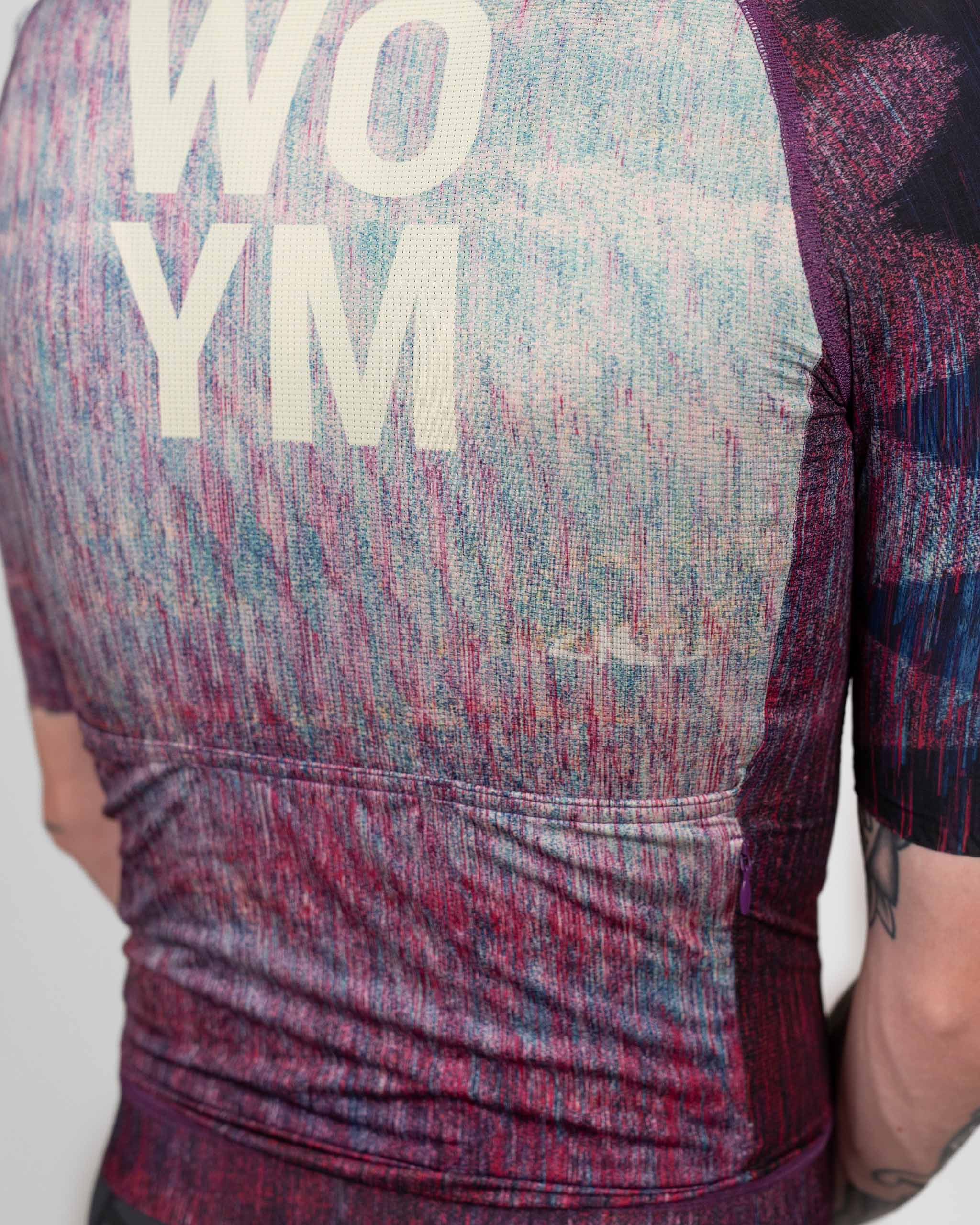 WOYM Jerseys er skabt med fokus på komfort, æstetik og personlighed. Små, men afgørende justeringer giver pasformen et tæt, men behageligt fit, der følger kroppens naturlige bevægelser uden at føles restriktivt. Kroppen er konstrueret i et letvægts mesh-materiale med åben struktur, der sikrer vedvarende ventilation og nedkøling. Ærmerne har samme base, men med lukket tekstur og laserskåret afslutning. En indvendig gripper holder diskret og effektivt ærmet på plads uden at kompromittere det rene udtryk. Jerseyens bund er afsluttet med en bred, elastisk og tæt ribkant, der sikrer et stabilt fit.